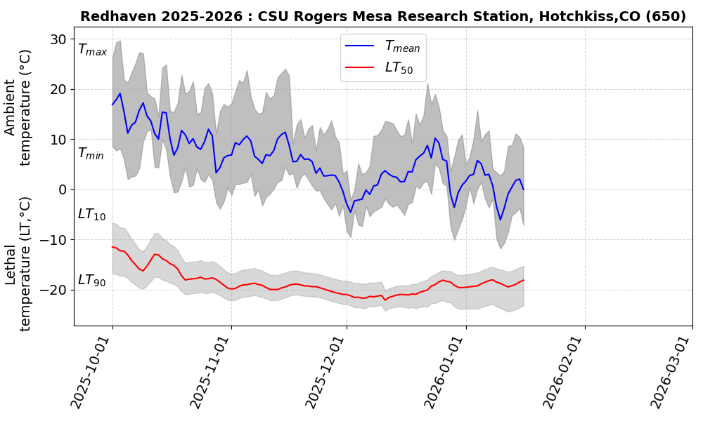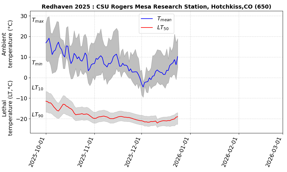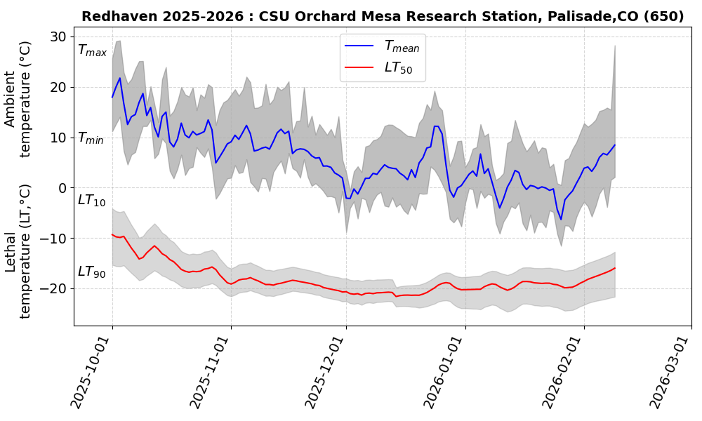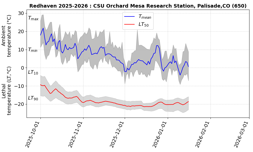 Redhaven Peach Cold Hardiness Model for Orchard Mesa and Rogers Mesa, CO